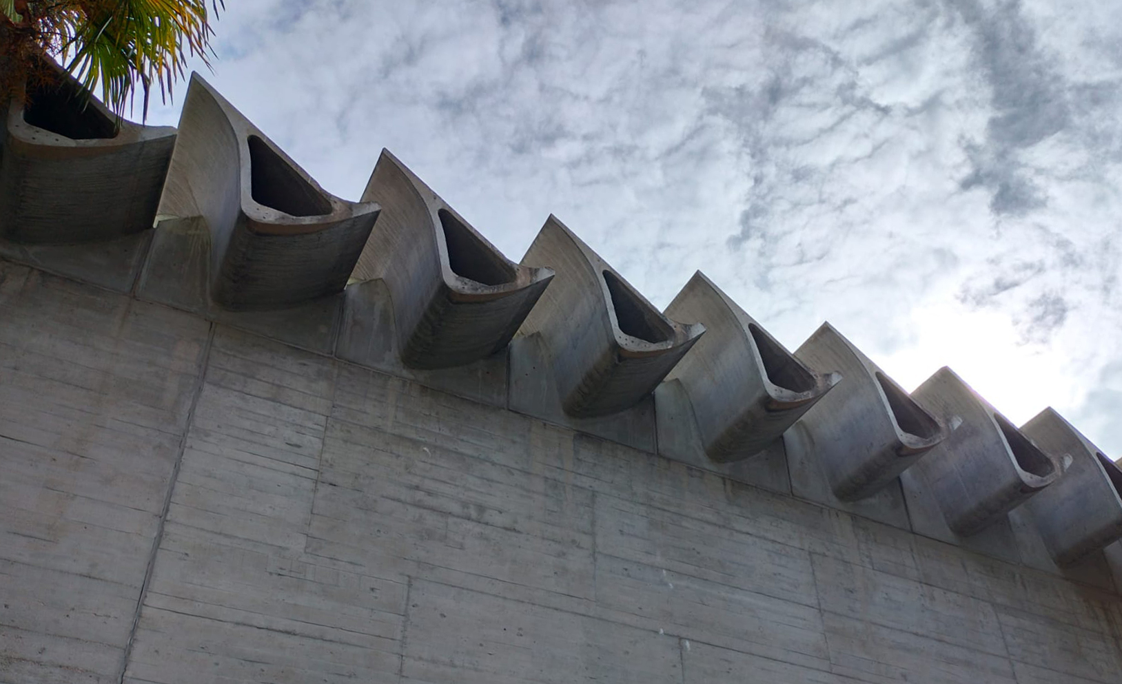 La pieza clave de la cubierta del laboratorio de hidráulica es la viga hueso, un elemento de hormigón postensado cuya forma responde a las exigencias de protección de las aguas de lluvia y de los rayos solares directos consiguiendo una iluminación homogénea.
