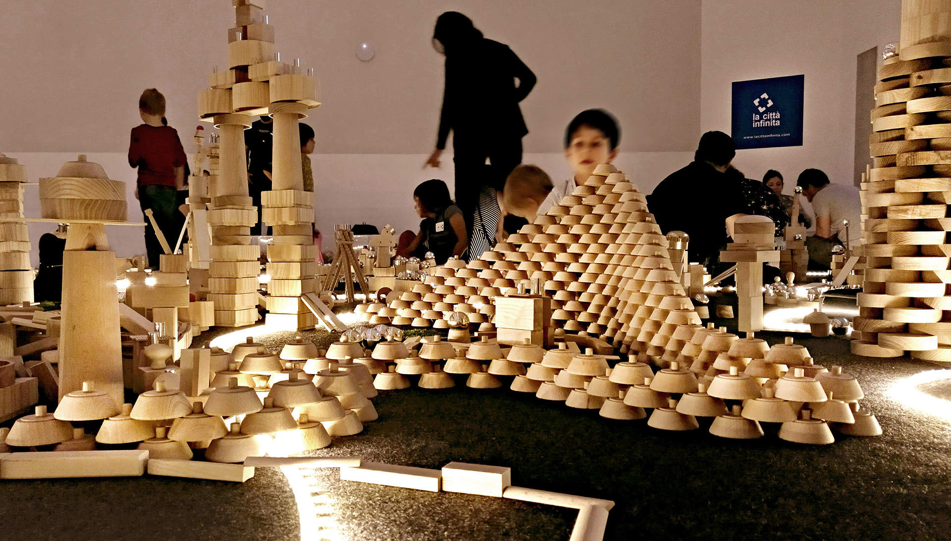 A través de la performance lúdica, participativa y sostenible «La città infinita», las niñas, los niños y sus familias colaboran juntos para conseguir una nueva idea de ciudad.